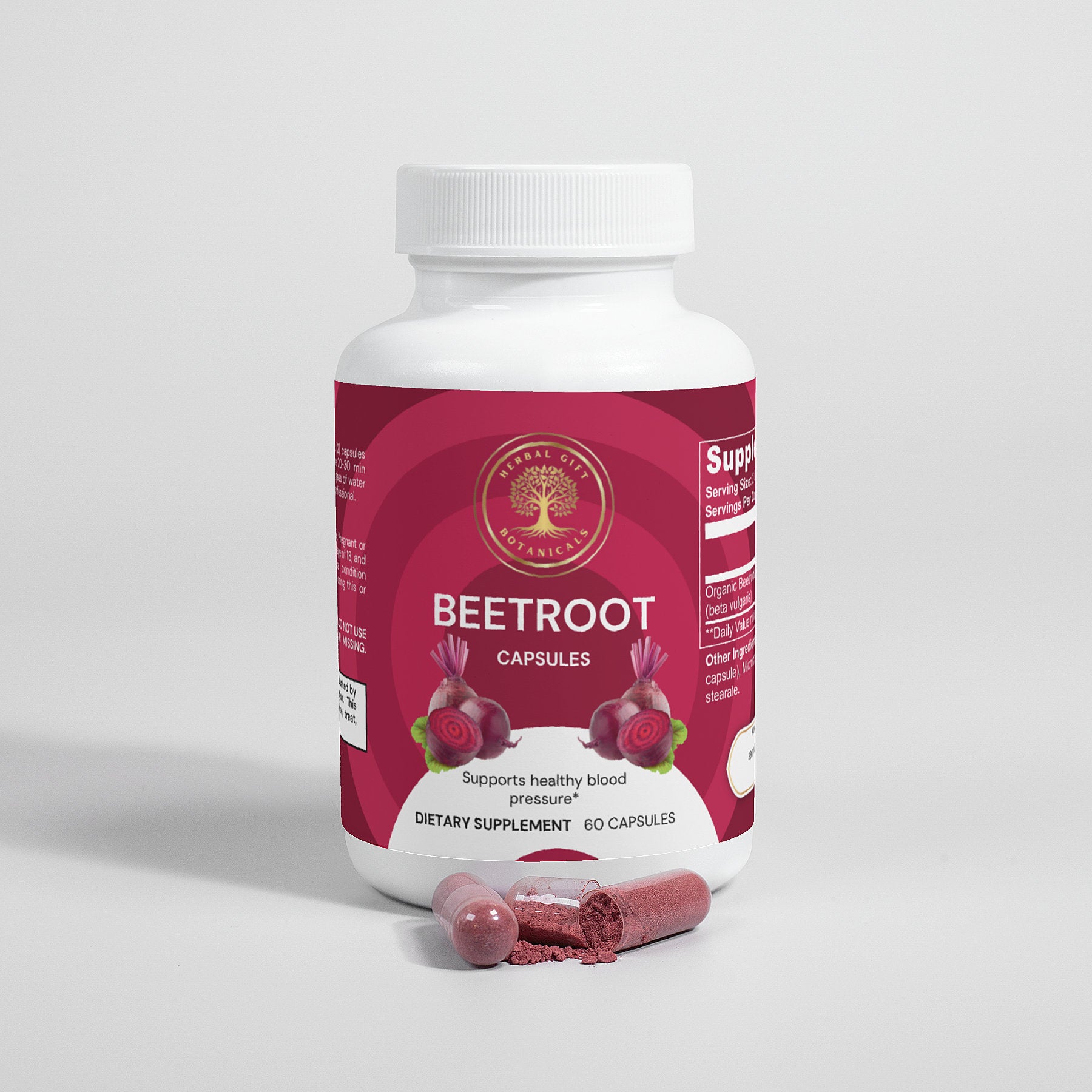 Ingredients: Organic Beetroot Powder (beta vulgaris), Hypromellose (vegetable capsule), Microcrystalline Cellulose, Magnesium Stearate.