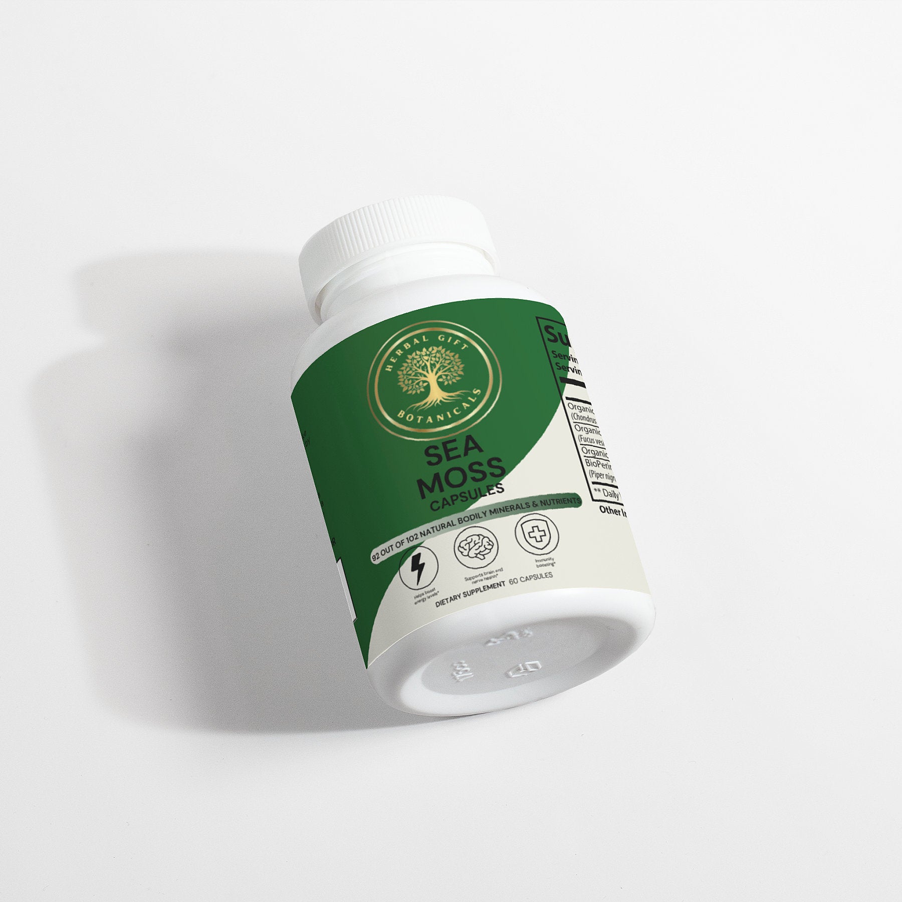 Ingredients: Organic Irish Moss, Organic Bladderwrack, Organic Burdock, BioPerine®, Pullulan Capsules.