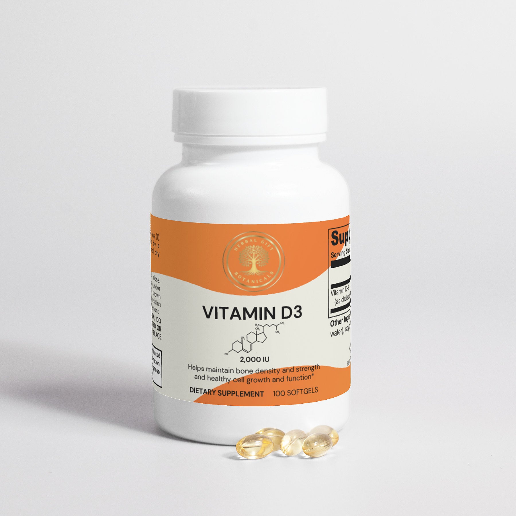 Ingredients: Vitamin D3 (as cholecalciferol), Softgel (gelatin, glycerin, water), soybean oil, corn oil.